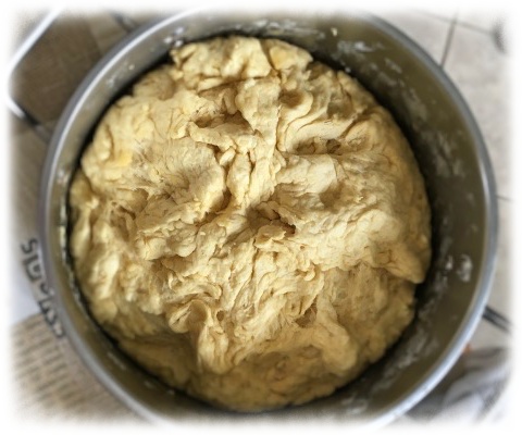 Ciasto ponownie nakryj ściereczką, odstaw w ciepłe miejsce, aby wyrosło na około godzinę lub półtorej.