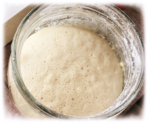 Zrób zaczyn. W miejsce lub dużym słoiku przynajmniej litrowym z przygotowanych składników na ciasto weź 2 łyżki mąki, 3 łyżki ciepłego mleka i łyżkę cukru. Dobrze wymieszaj z pokruszonymi drożdżami. Przykryj ściereczką i odstaw do wyrośnięcia w ciepłe miejsce na około 15-20 minut. Zaczyn powinien urosnąć i bardzo się spienić. Możesz zaczyn umieścić w piekarniku (ustaw na 35 stopni).